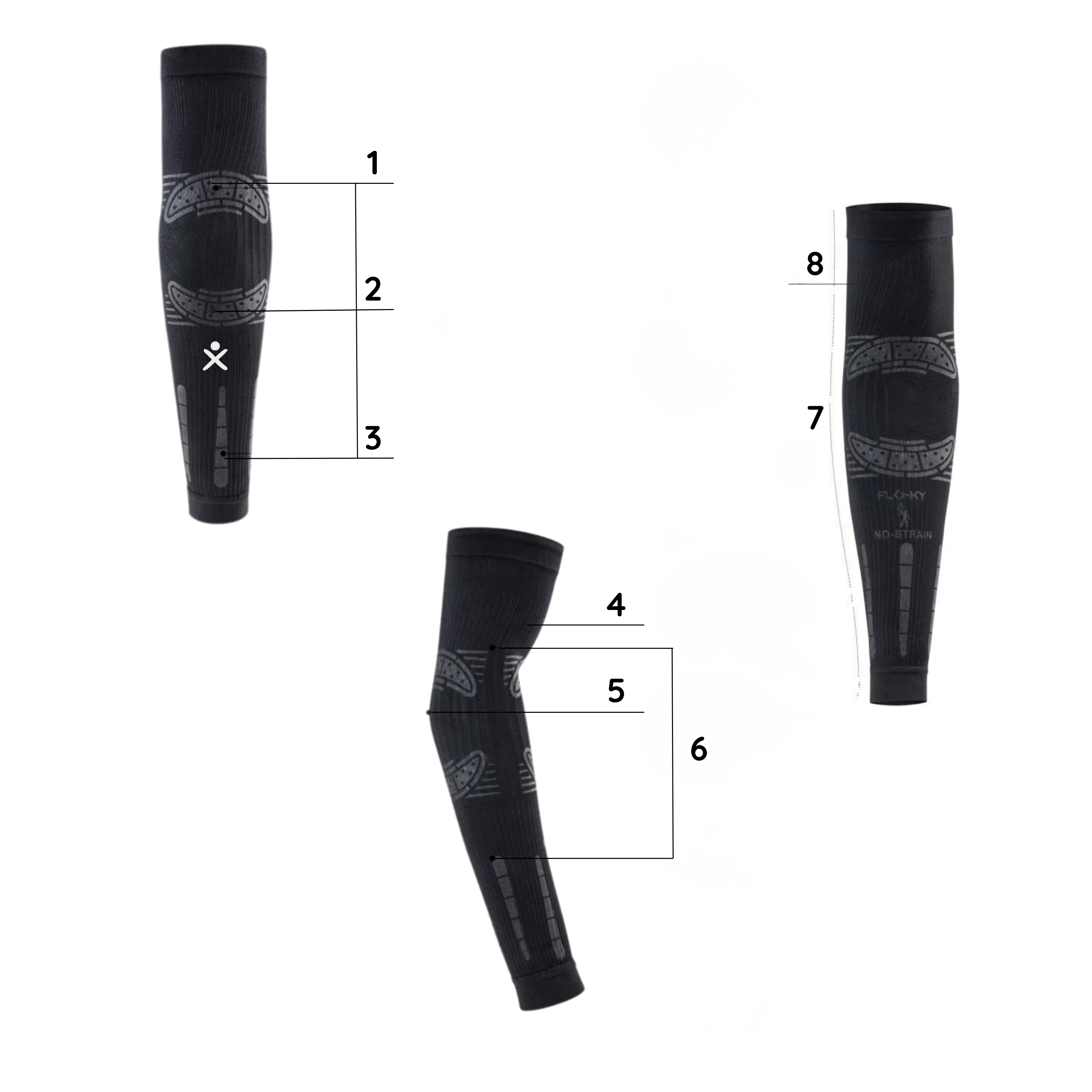La compresión en las zonas anatómicas del codo y el antebrazo se traduce en una mayor estabilidad de las estructuras tendinosas implicadas en las vibraciones y movimientos del brazo y el cuerpo.